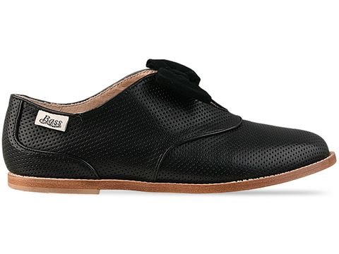 Leather Upper A Rachel Antonoff exclusive design for Bass Features tiny, allover perforations that add modern texture to a sleek oxford finished with a pert bow atop the open vamp Slip-on style with hidden elastic goring Leather upper and lining/synthetic soleAlice is a perfed leather bal slip-on. Elastic gore for fit. Pancake heel and leather outsole. Beautiful leather linings. Rachel Antonoff exclusive design for Bass!
